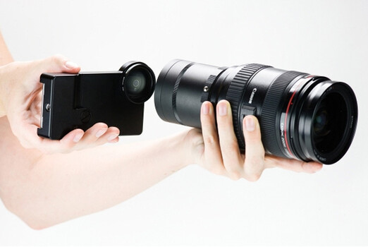なんとiPhoneに装着されたケースに一眼レフレンズが取り付けてあるものです!!