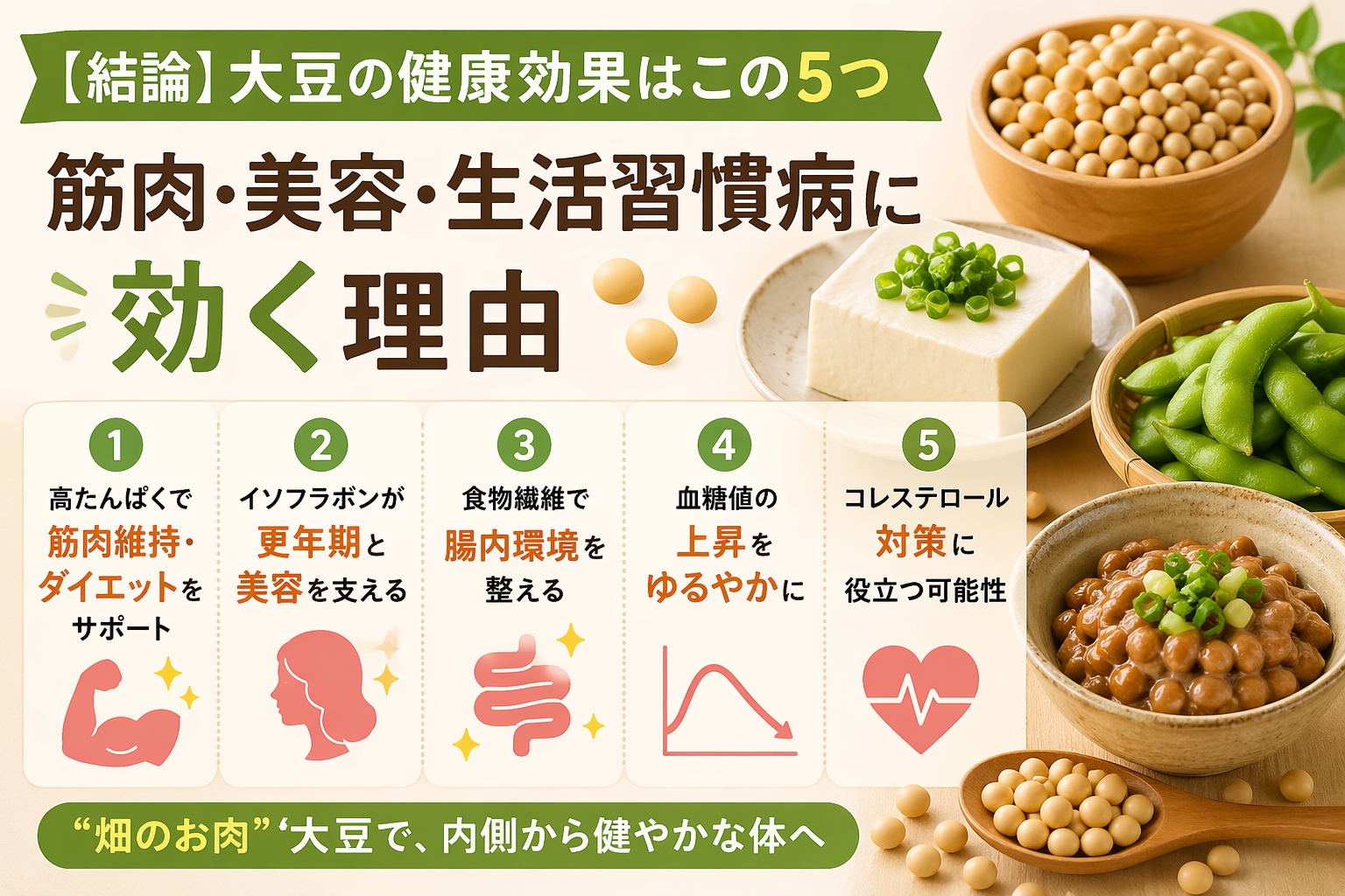 【結論】大豆の健康効果はこの5つ|筋肉・美容・生活習慣病に効く理由