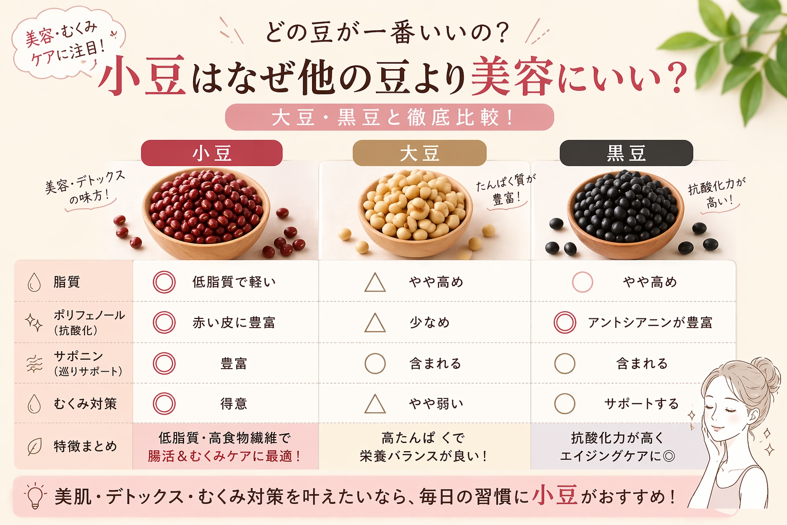 2. なぜ小豆は他の豆より美容にいい?大豆・黒豆と徹底比較