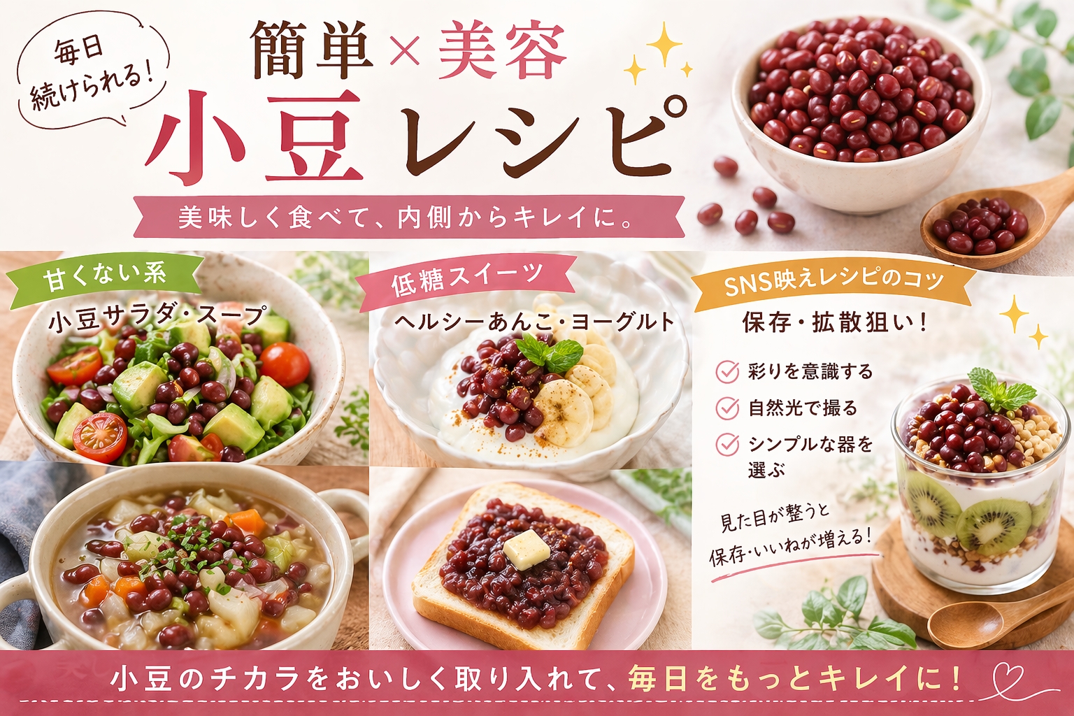「美容のために我慢する」のではなく、「おいしく食べていたら整ってきた」という流れを作りやすいのが、小豆の大きな魅力です。