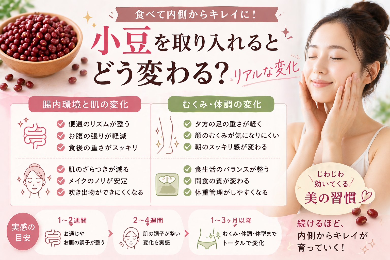小豆で美肌習慣を育てるアイキャッチ 食べ物